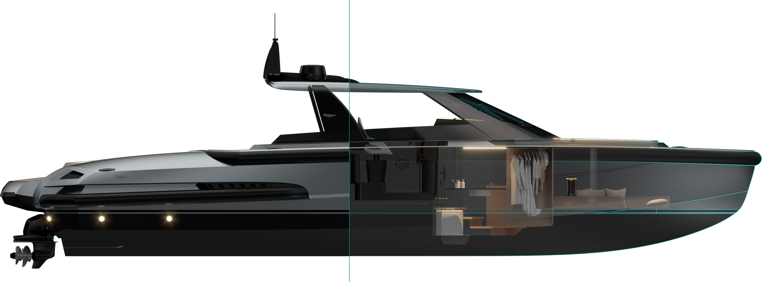 The Ribbon 45 is equipped with two powerful Volvo Penta D6 DPI 440HP combined with Aquamatic Sterndrives. The Volvo D6 DPI is state-of-the-art marine engines that deliver outstanding performance, reliability, and durability. Volvo Penta’s marine engines are designed to provide unmatched power, ensuring a smooth and enjoyable boating experience. From the Duoprop technology that increases grip on the water, to features like electronic shift - every innovative solution big or small, is developed to enhance performance for your adventures on the water.